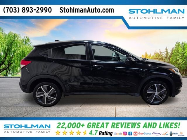 2021 Honda HR-V EX 17" Machine-Finished Alloy Wheels, 4-Wheel Disc Brakes, 5.436 Axle Ratio, 6 Speakers, ABS brakes, Air Conditioning, Alloy wheels, AM/FM radio: SiriusXM, Apple CarPlay/Android Auto, Auto High-beam Headlights, Automatic temperature control, Brake assist, Bumpers: body-color, Cloth Seat Trim, Delay-off headlights, Driver door bin, Driver vanity mirror, Dual front impact airbags, Dual front side impact airbags, Electronic Stability Control, Emergency communication system, Exterior Parking Camera Rear, Forward collision: Collision Mitigation Braking System (CMBS) + FCW mitigation, Front anti-roll bar, Front Bucket Seats, Front Center Armrest, Front fog lights, Front reading lights, Front wheel independent suspension, Fully automatic headlights, Heated door mirrors, Heated Front Bucket Seats, Heated front seats, Illuminated entry, Low tire pressure warning, Occupant sensing airbag, Outside temperature display, Overhead airbag, Panic alarm, Passenger door bin, Passenger vanity mirror, Power door mirrors, Power moonroof, Power steering, Power windows, Radio data system, Radio: AM/FM/HD Audio System (180-Watt), Rear anti-roll bar, Rear window defroster, Rear window wiper, Remote keyless entry, Roof rack: rails only, Security system, SiriusXM Radio, Speed control, Speed-sensing steering, Split folding rear seat, Spoiler, Steering wheel mounted audio controls, Tachometer, Telescoping steering wheel, Tilt steering wheel, Traction control, Trip computer, Turn signal indicator mirrors, and Variably intermittent wipers. Recent Arrival! 26/31 City/Highway MPG